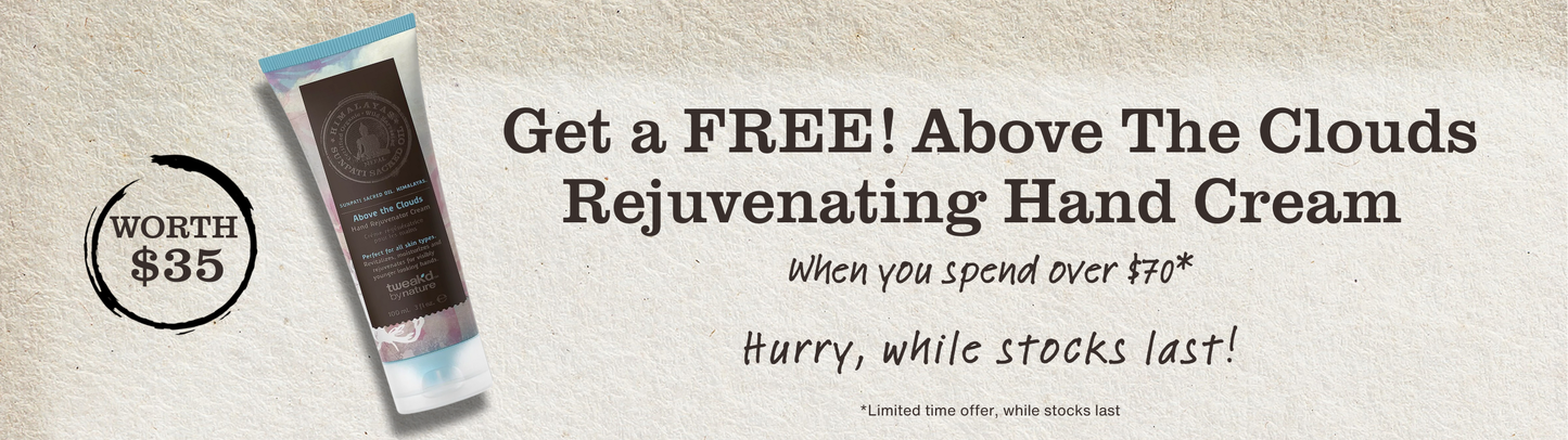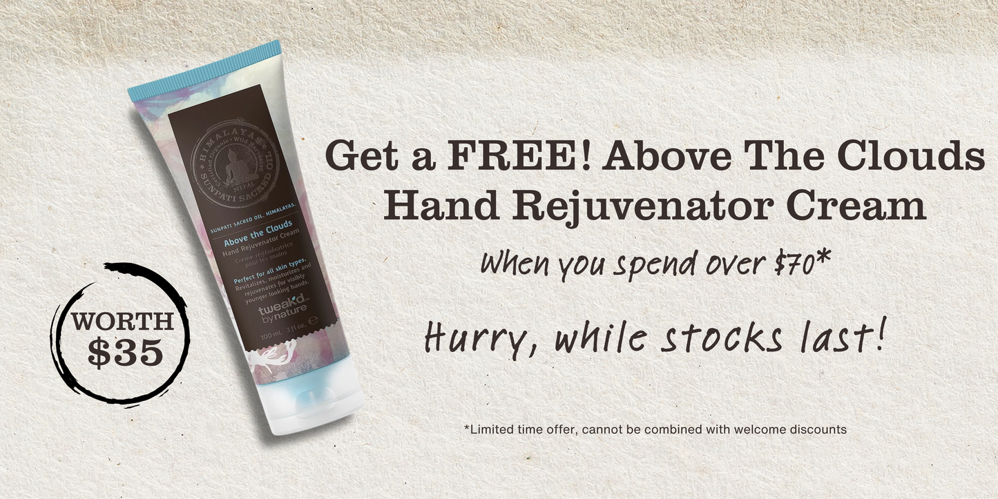 PLUS, get a FREE Above the Clouds Hand Rejuvenator Cream with any purchase over $70.